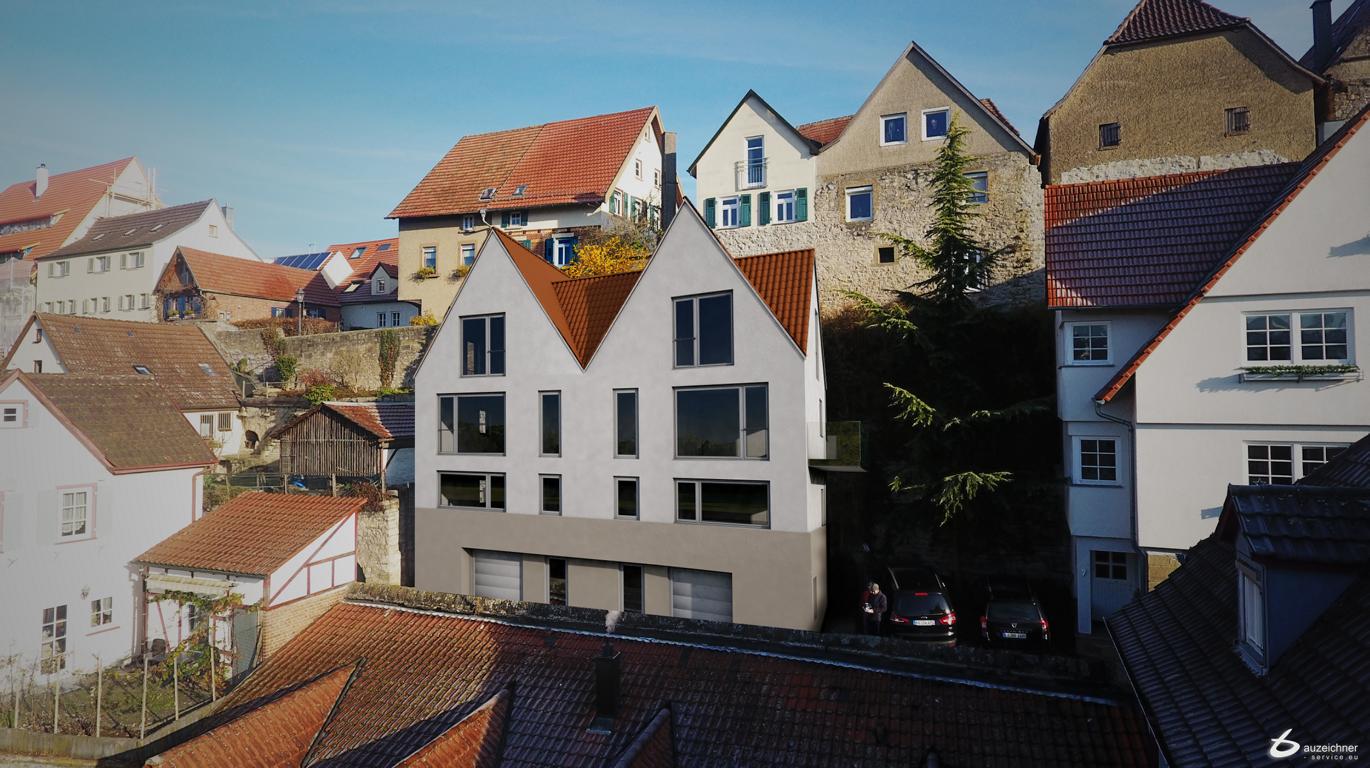 Im Stadtkern von Besigheim erstellen wir 2 Stadthäuser in einer massiven Bauweise mit einem traumhaften Ausblick auf die Enz. Das Haus besticht durch großzügige helle Räume und einer gelungener Architektur. Garage und Stellplatz verfügbar.